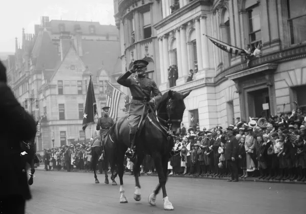 On Sept. 10, 1919, General “Black Jack” Pershing leads a victory parade down New York's Fifth Avenue as crowds cheer 25,000 returning "Doughboys."